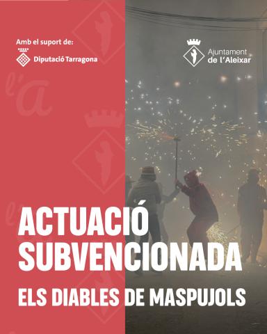 Per festivitats com la Festa Major de Sant Martí 2025, hem pogut gaudir d'aquesta actuació que s'ha dut a terme amb el suport de la Diputació de Tarragona i la subvenció de programacions culturals la qual se'ns va concedir: Actuació dels Diables de Maspujols el dia 07/11/2025, en motiu de la Festa...