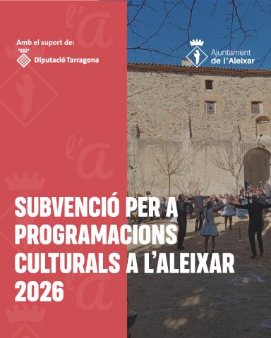 La Diputació de Tarragona ha concedit a l'Ajuntament de l'Aleixar, una subvenció, per import de 14.303,30 €, per a actuacions de grups o persones inscrits en el Catàleg per a programacions culturals, convocatòria 2026.