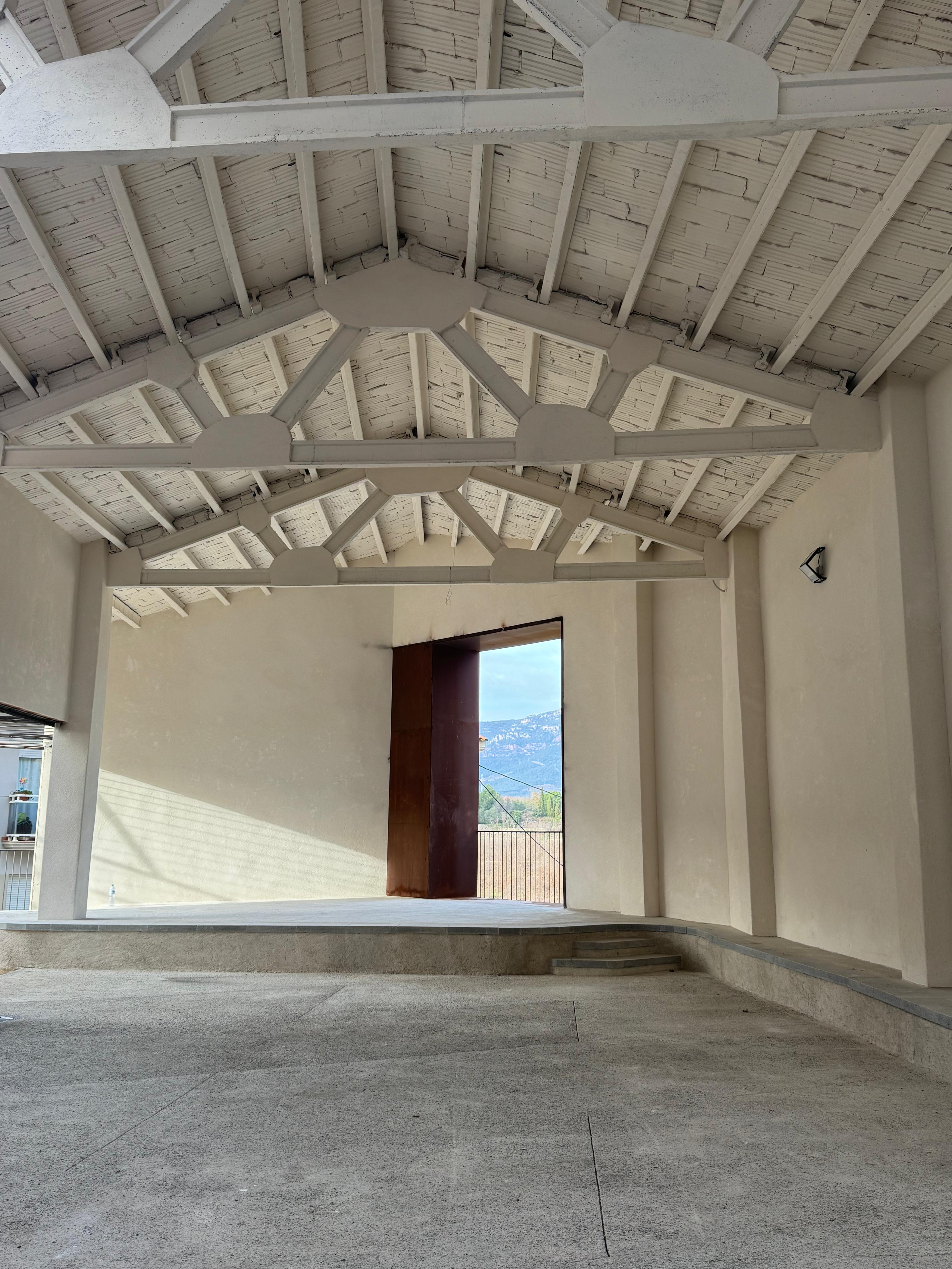 - L'espai principal amb l'escenari i una coberta que proporciona ombra.