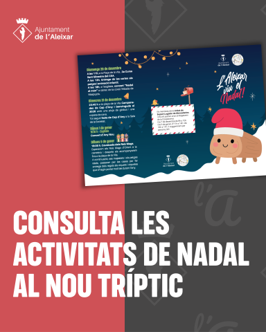 Ja teniu disponible el nou tríptic de Nadal! El tríptic recull tota la informació sobre els actes, activitats i propostes que viurem aquestes festes. També el podeu consultar en format digital! El trobareu adjunt en aquesta notícia. No us perdeu cap detall del Nadal a l’Aleixar!